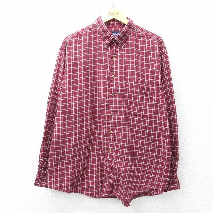 ■古着 ランズエンド 長袖 ブランド シャツ メンズ 00年代 00s 大きいサイズ コットン ボタンダウン エンジ系他 チェック 25nov14