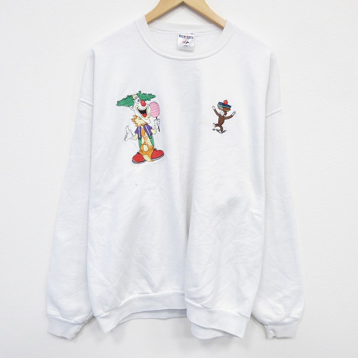 ■古着 ジャージーズ 長袖 スウェット メンズ 00年代 00s ピエロ 刺繍 大きいサイズ クルーネック 白 25nov17