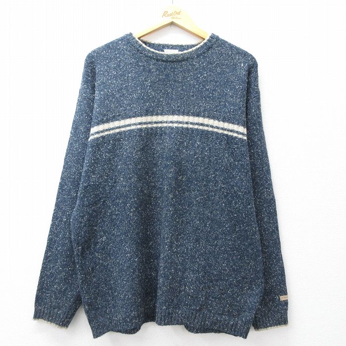 ■古着 コロンビア 長袖 セーター メンズ 00年代 00s クルーネック 紺他 25nov21