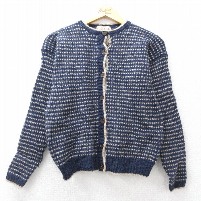 ■古着 ウールリッチ 長袖 ニット カーディガン レディース 00年代 00s バーズアイ ウール 紺他 25nov26
