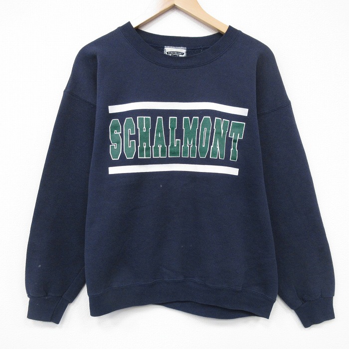 ■古着 リー Lee 長袖 スウェット メンズ 90年代 90s SCHALMONT クルーネック USA製 紺 25nov13