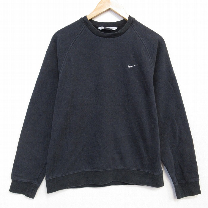 ■古着 ナイキ NIKE 長袖 スウェット メンズ 00年代 00s ワンポイントロゴ クルーネック 黒 25nov14