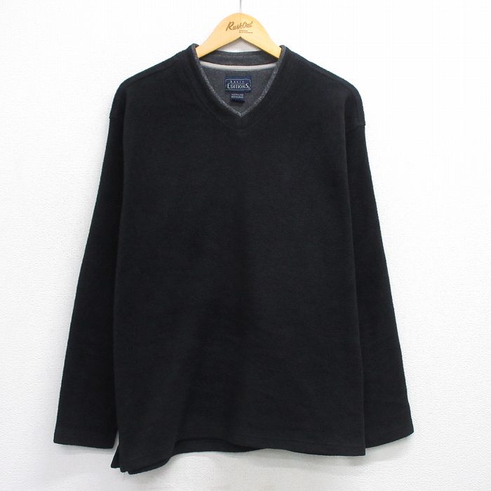 ■古着 ベーシックエディションズ 長袖 フリース ジャケット メンズ 90年代 90s 無地 Vネック 黒 25nov29