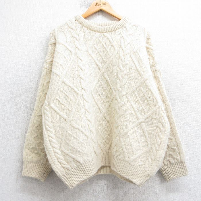 ■古着 長袖 アラン フィッシャーマン ケーブル セーター メンズ 90年代 90s ウール クルーネック スコットランド製 生成り 25nov14