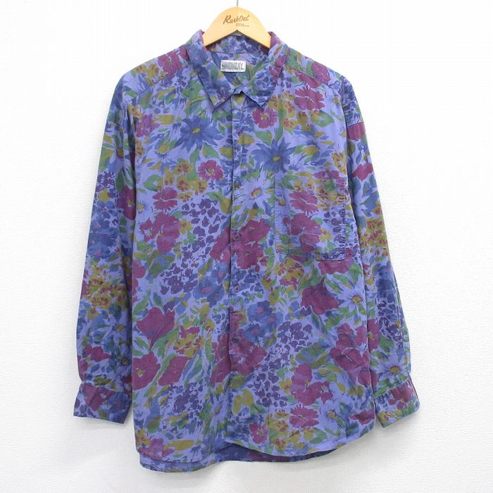 ■古着 ユニオンベイ 長袖 シャツ メンズ 00年代 00s 花柄 紫他 25nov17