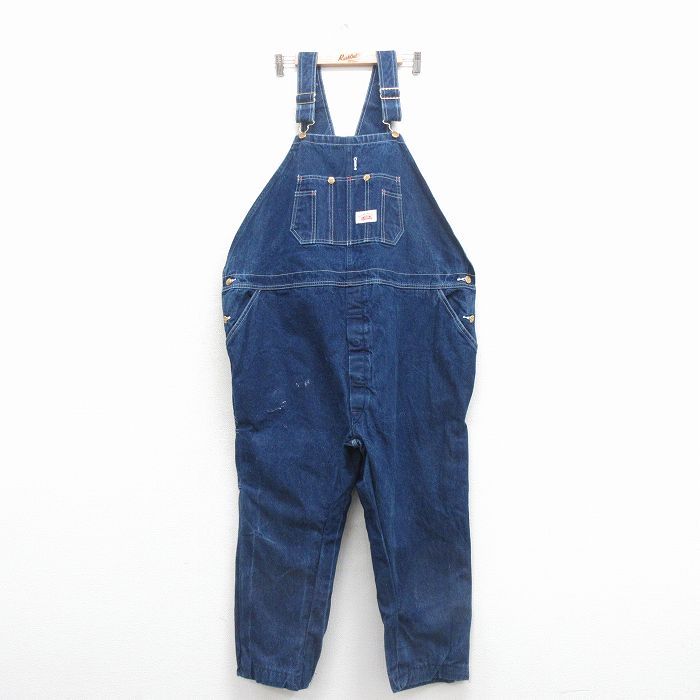 ■古着 ラウンドハウス オーバーオール メンズ 大きいサイズ コットン 濃紺 デニム 25nov17