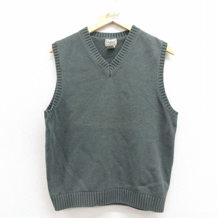 ■古着 エルエルビーン ニット ベスト メンズ 00年代 00s コットン Vネック 緑 25nov12