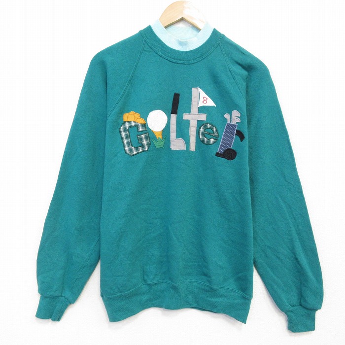 ■古着 ジャージーズ 長袖 スウェット メンズ 80年代 80s ゴルフ モックネック ハイネック USA製 緑 25nov14