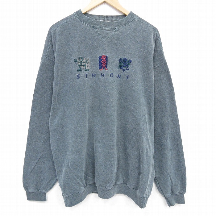 ■古着 長袖 スウェット メンズ 00年代 00s SIMMONS 刺繍 コットン クルーネック 濃緑 霜降り 25nov12