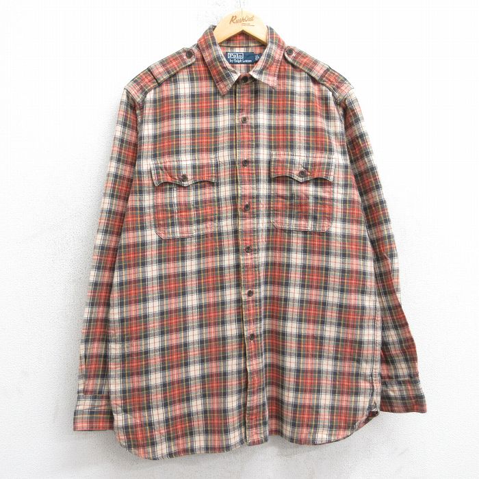 ■古着 ラルフローレン 長袖 ブランド フランネル シャツ メンズ 90年代 90s コットン オレンジ他 チェック 25nov20