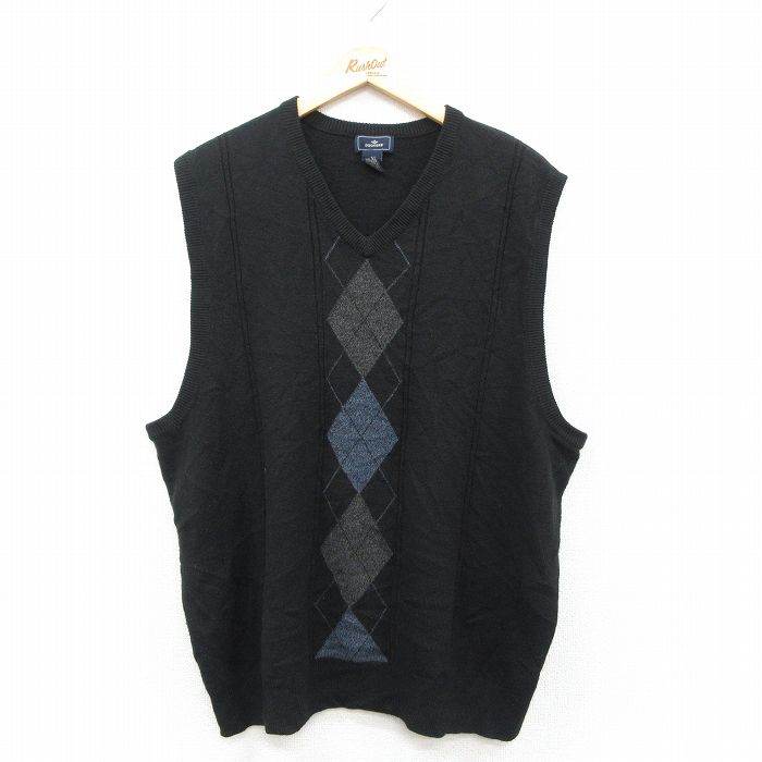 ■古着 ドッカーズ ニット ベスト メンズ アーガイル アクリル Vネック 黒 25nov25