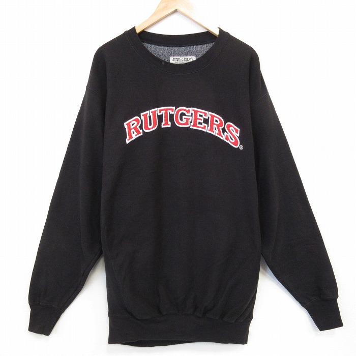 ■古着 STEVE & BARRYS 長袖 スウェット メンズ ラトガーズ 刺繍 大きいサイズ ロング丈 クルーネック 黒 25nov11