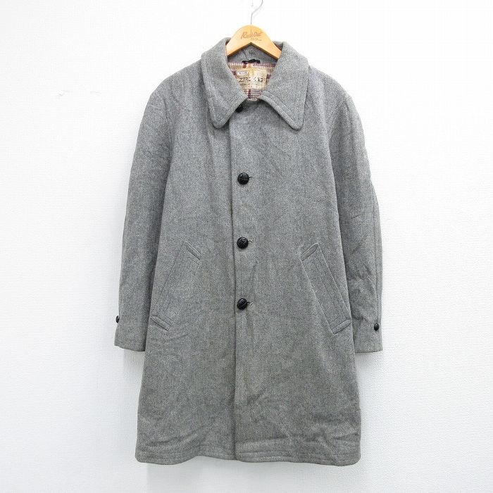 ■古着 長袖 ウール コート メンズ 90年代 90s ロング丈 USA製 グレー 内側ブランケット 25nov18