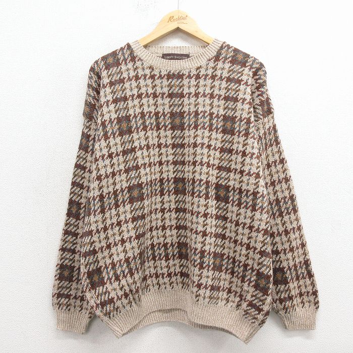 ■古着 リバティ 長袖 セーター メンズ 00年代 00s クルーネック USA製 ベージュ 霜降り他 25nov17