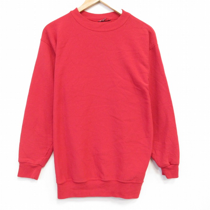 ■古着 長袖 スウェット メンズ 00年代 00s 無地 クルーネック 赤 25nov11