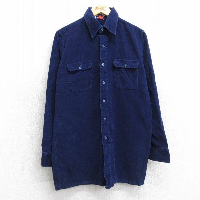■古着 長袖 シャツ メンズ 80年代 80s コーデュロイ コットン 紺 25nov15