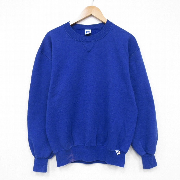 ■古着 ラッセル 長袖 スウェット メンズ 90年代 90s 無地 クルーネック USA製 青 25nov17