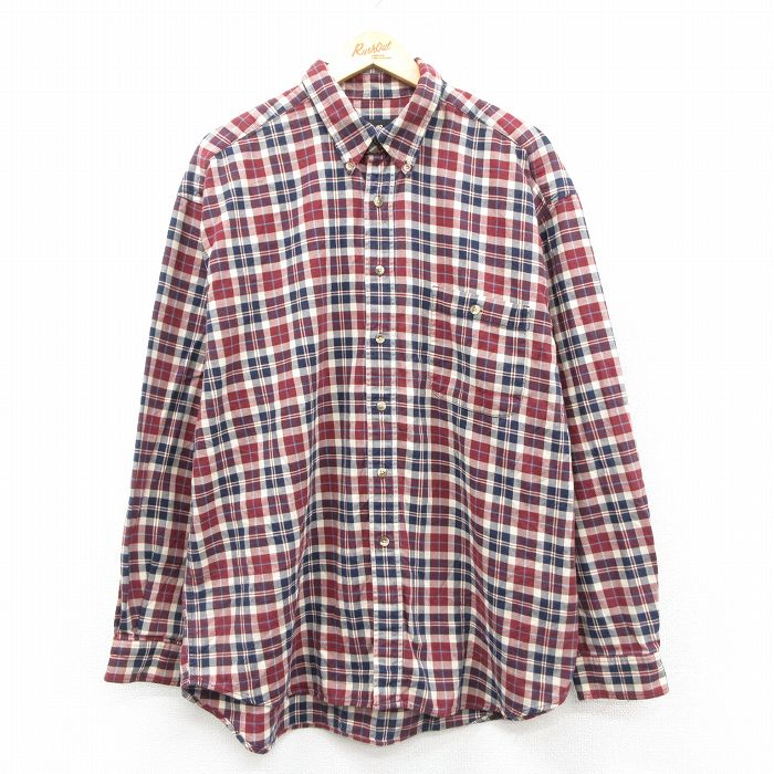 ■古着 エディーバウアー 長袖 ブランド シャツ メンズ 00年代 00s 大きいサイズ ロング丈 コットン ボタンダウン エンジ他 チェック 25nov