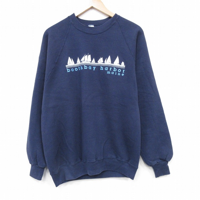 ■古着 ラッセル 長袖 スウェット メンズ 80年代 80s ヨット ラグラン クルーネック USA製 紺 25nov20