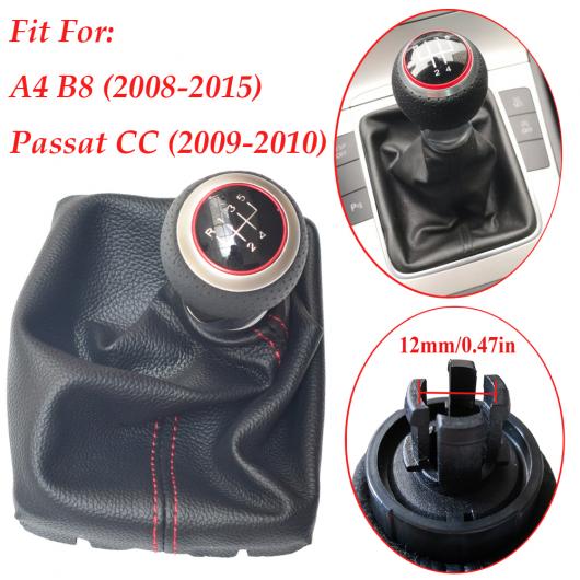 ■5/6速 レザー レッド ギア シフト ノブ クローム レッド リング ゲートル ブーツ 適用: アウディ A4 B8 2008-2015 パサート CC 2009-2010