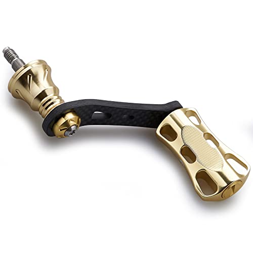 フィッシング・ゴールド ・・Color:ゴールド ・ライトゲーム 渓流釣り用1.5K炭素布のハンドルで更に強度アップ、22mm幅x11mm厚軽量ノブ搭載、全体的に軽量。 ・サイズハンドル軸心距離42mm、ノブ22mm幅x11mm厚 総重19gシマノ用/16.5gダイワ用素材ハンドル - 1.5K炭素布のカーボン、ノブ - 70シリーズ航空アルミ。 ・リールハンドル付属SHIMANO ソケット 1個、DAIWA ソケット 1個、梅レンチ1個。 ・適応機種SHIMANO、DAIWAのねじ込み式スピニングリールハンドルのに適用。 ・:60日間付属を除く保障付き、できます。リールハンドルの可能対応機種は以下の説明限りではありませんので、何か問題がございましたら、メールでご連絡おねがいいたします。