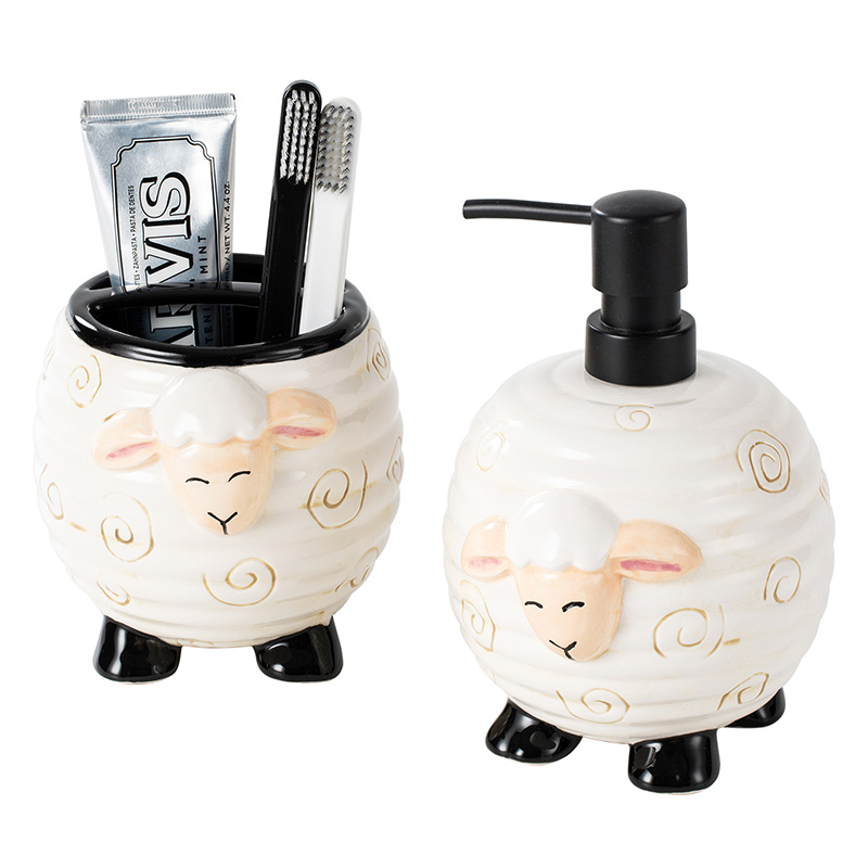 ■浴室アクセサリー 2個セット シープ型 ディスペンサー ソープ 乳液 ボディーソープ シャンプー バスルーム ブラシホルダー 雑貨収納 家族