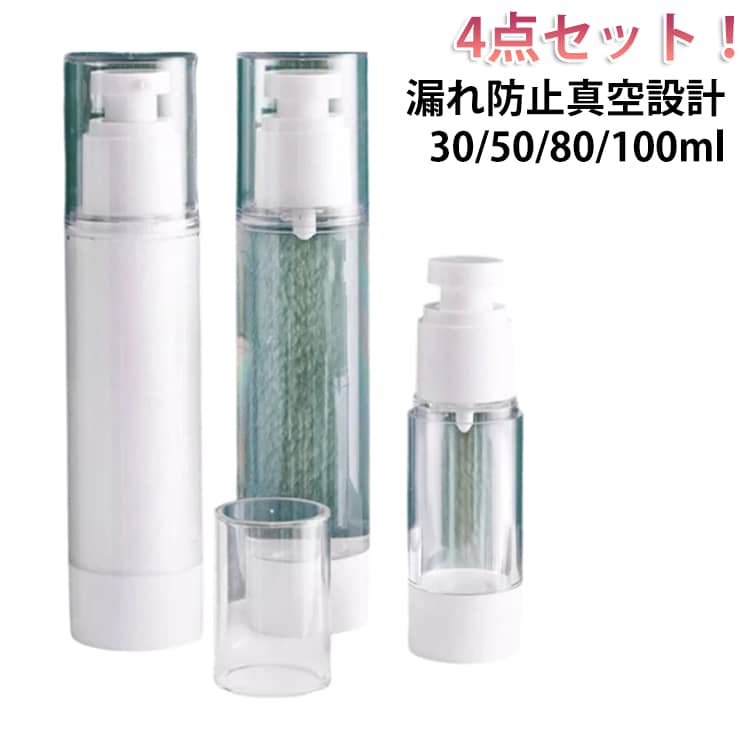 ■4本セット 30ml 50ml 80ml 100ml トラベルセット 詰め替えボトル 真空 化粧水 シャンプー 小分けボトル 乳液 クリーム スキンケア用 真空