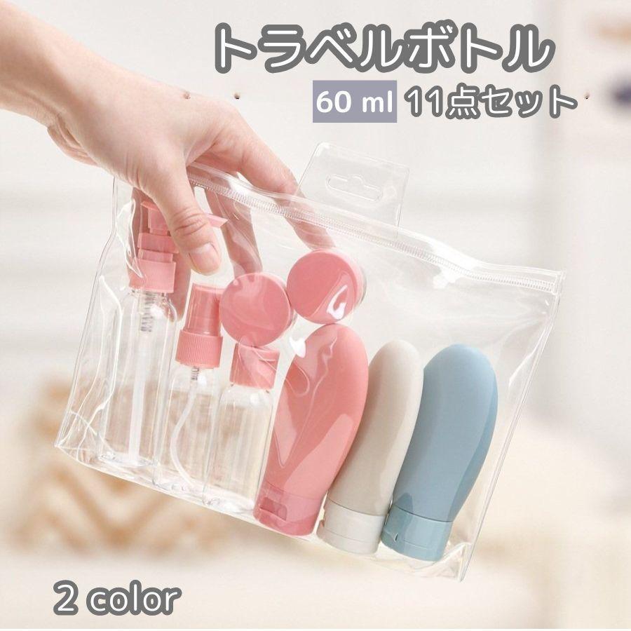 トラベルボトル 詰め替え容器 11個セット 60ml 透明収納袋付き 小分け 化粧水 乳液 シャンプー 化粧品 ケース 容器 持ち運び ミニサイズ コ
