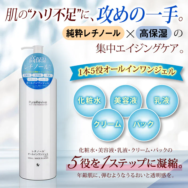 ■ピュアリバイブ オールインワンモイスチャージェル〈レチノール〉(1本) 1本5役 化粧水 美容液 乳液 クリーム パック Wレチノール ピュ