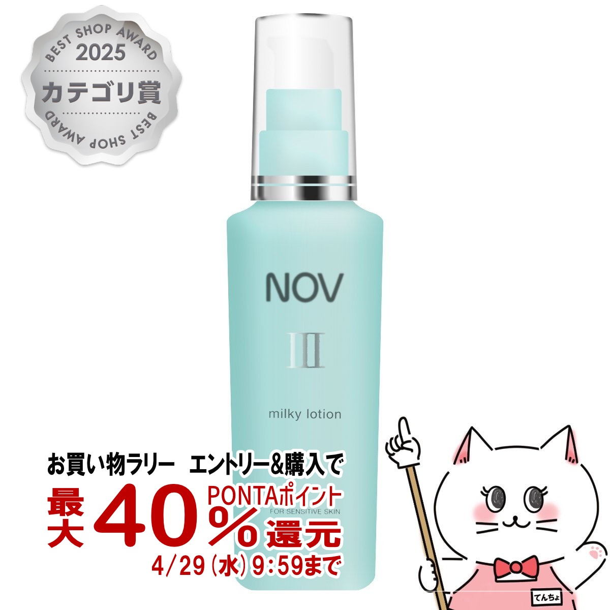 ■【お買い物ラリー 最大40%還元】ノエビア NOVノブ IIIミルキィローション 80ml[乳液][医薬部外品][送料無料] (6011157)