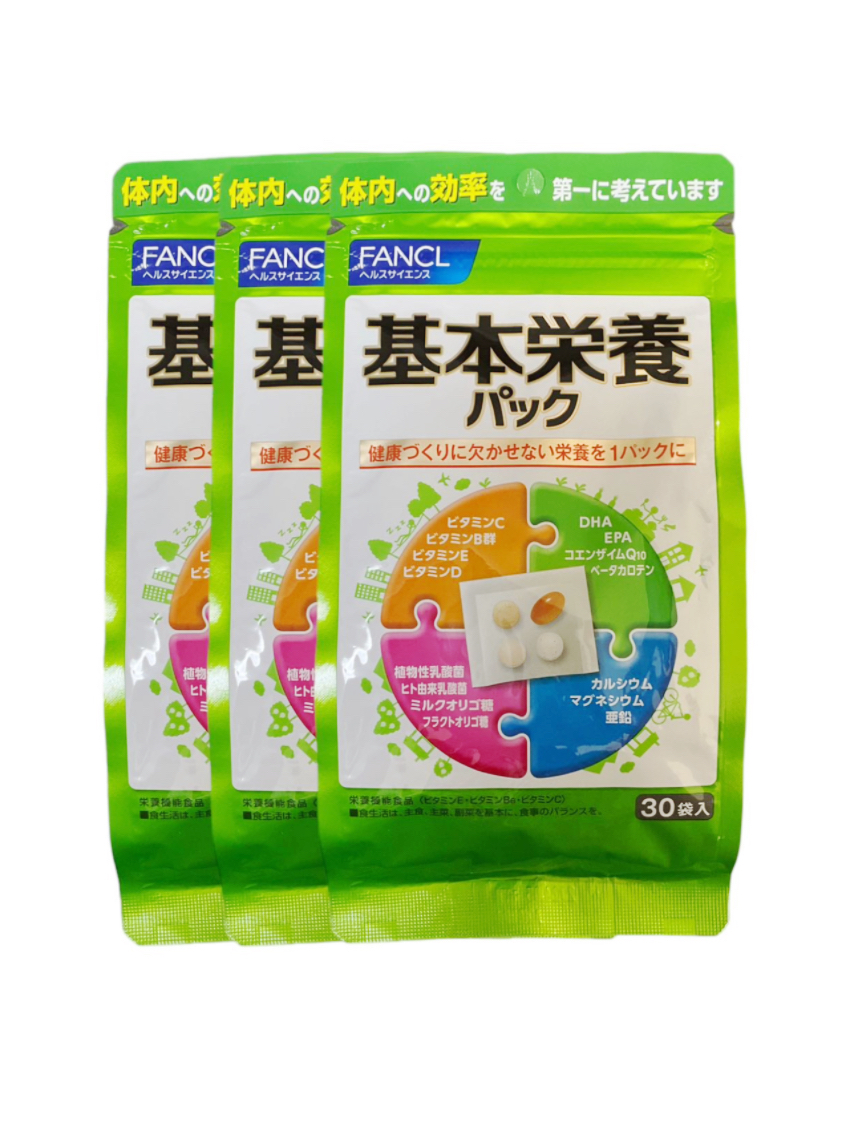 ■fancl ファンケル 基本栄養パック 栄養機能食品(30袋)X3袋【お徳用3点セット】 1袋にギュッ!毎日の栄養をサポートする便利なパック ベー