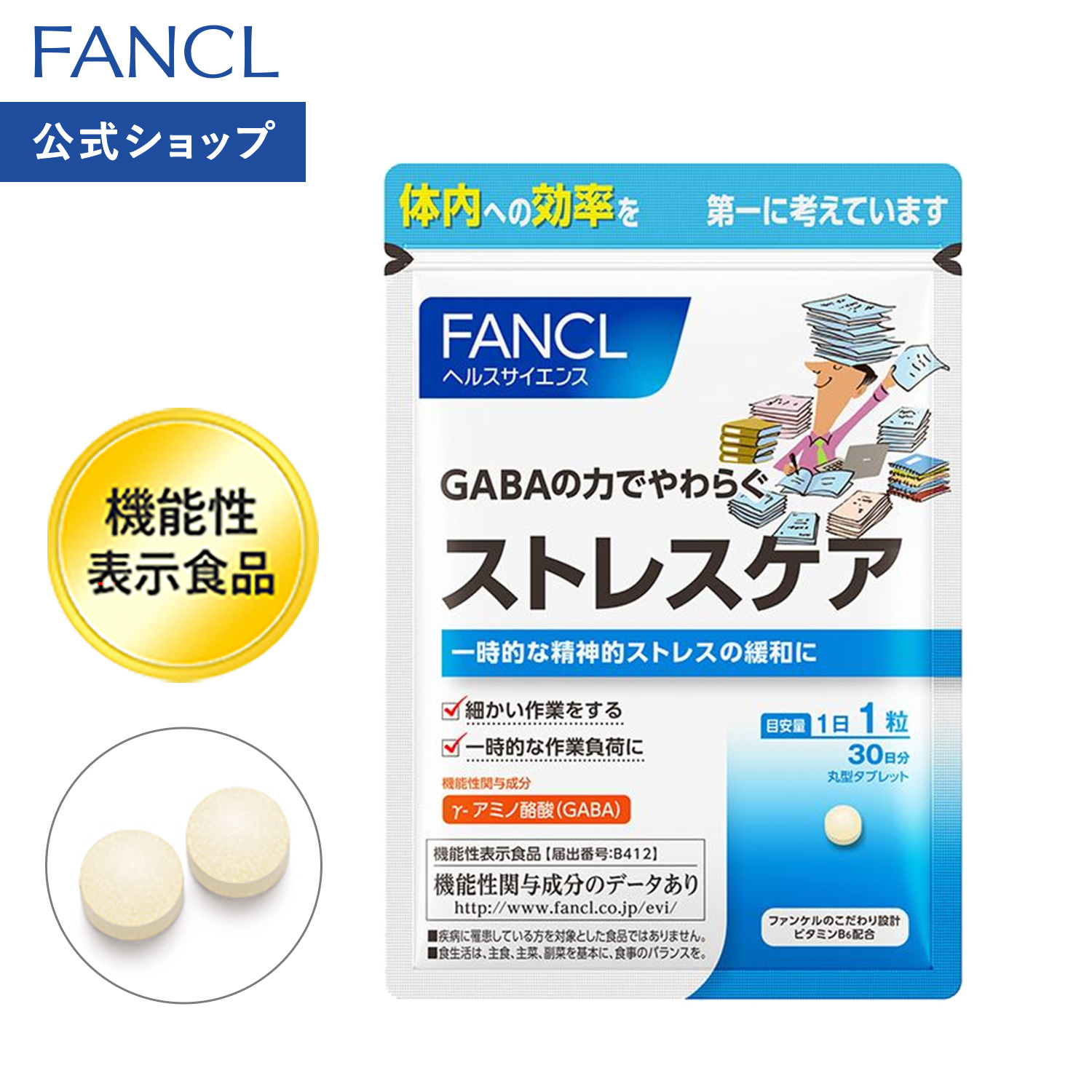 ■ストレスケア <機能性表示食品> 30日分 【ファンケル 公式】[FANCL サプリ サプリメント 健康食品 gaba ギャバ ビタミンb6 ビタミンb12