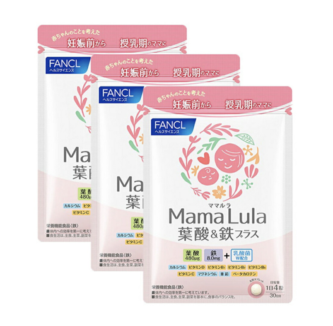 ■【FANCL ファンケル 】Mama Lula 葉酸 & 鉄プラス 約90日分 徳用3袋セット