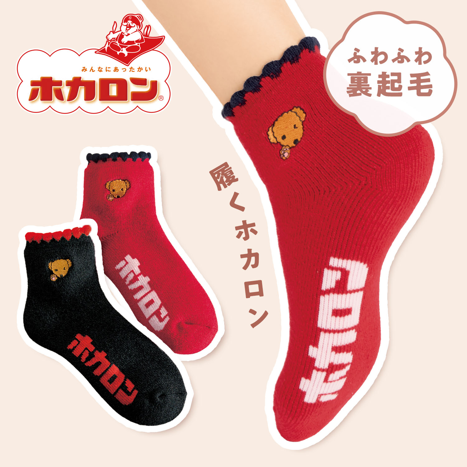 FANCL×ホカロン®のコラボ!レトロかわいいオリジナルソックス。 太めの糸を使用し、もっちりとした質感。肌側は毛足の長い裏起毛でホカロンのようにぬくぬくなソックス。肌当たりやさしいワンケルくんのワンポイント刺繍付き。 ※限定数に達し次第、販売終了とさせていただきます。 この商品は株式会社ロッテとのライセンス契約に基づき製造されたものです。ホカロンは(株)ロッテの登録商標です。