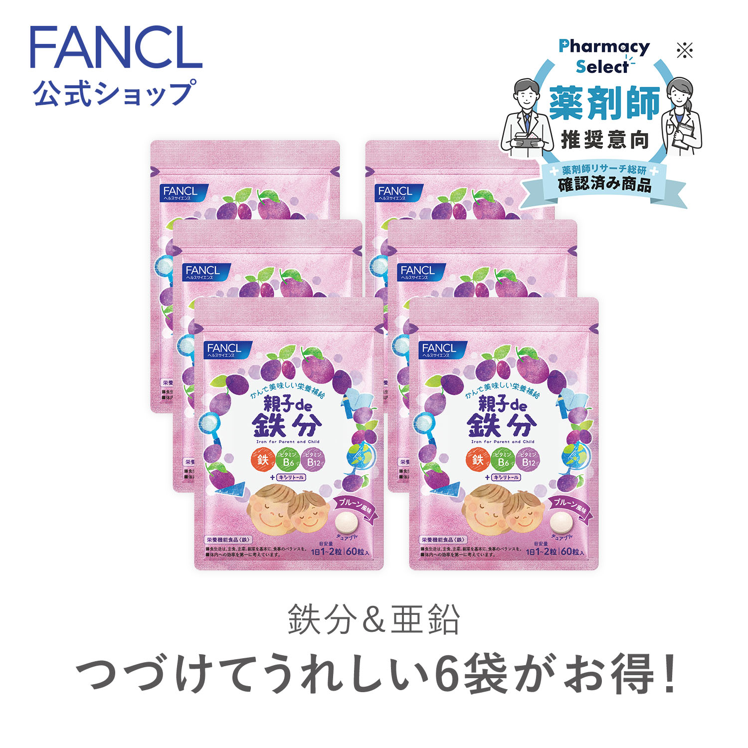 ■親子de 鉄分<栄養機能食品> 30〜60日分×6袋 【ファンケル 公式】[FANCL 健康食品 鉄 鉄分補給 栄養補助 男性 女性 子供 成長 チュアブ