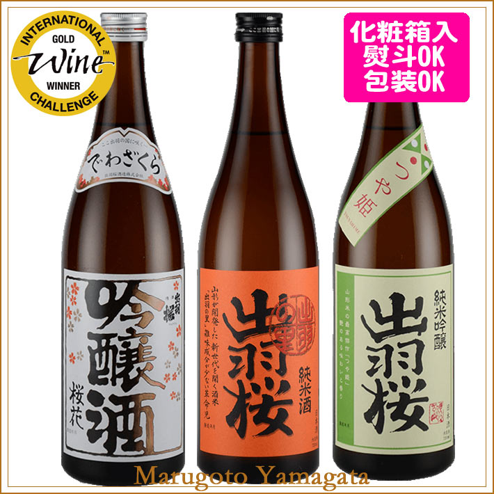 ■セット内容 出羽桜酒造の受賞酒が3本 出羽桜 桜花吟醸720ml 1本 出羽桜 純米出羽の里720ml 1本 出羽桜 純米吟醸つや姫720ml 1本 ■お酒データ <出羽桜 桜花吟醸> 2016年 インターナショナル・ワイン・チャレンジ トロフィー 吟醸ブームの火付け役。フルーティーな吟醸香と爽快な味わい 「マックスファクター化粧品SK-?の香りサンプル」 「英国最古のワイン商で王室御用達のBB & R社が初めて扱う日本酒」に採用 精米歩合50% アルコール度15度 使用米国産米 <出羽桜 純米出羽の里> IWC2016(International wine challenge 2016)『チャンピオン・サケ』受賞! お酒データ 原料米:出羽の里 精米歩合:60% 酵母:山形酵母 日本酒度:+1 酸度:1.2 アルコール度数:15.0% <出羽桜 純米吟醸つや姫> 種類純米吟醸酒 アルコール15% 日本酒度+1 酸度1.4 原料米国産米(特別栽培米山形県産つや姫) 精米歩合50%