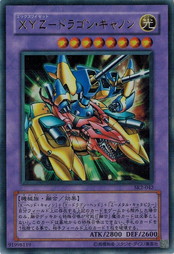カード名:XYZ−ドラゴン・キャノン 収録:STRUCTURE DECK−海馬編− Volume.2 品番:SK2-042 レアリティ:ウルトラレア 融合・効果モンスター 星8/光属性/機械族/攻2800/守2600 「X−ヘッド・キャノン」+「Y−ドラゴン・ヘッド」+「Z−メタル・キャタピラー」 自分フィールドの上記カードを除外した場合のみ、 エクストラデッキから特殊召喚できる(「融合」は必要としない)。 このカードは墓地からの特殊召喚はできない。 (1):手札を1枚捨て、相手フィールドのカード1枚を対象として発動できる。 その相手のカードを破壊する。