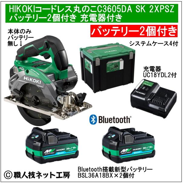 ■ハイコーキ コードレス丸のこ36V125mm C3605DA SK 2XPSZ グリーン 電池2個付 充電器付 システムケース4タイプ付