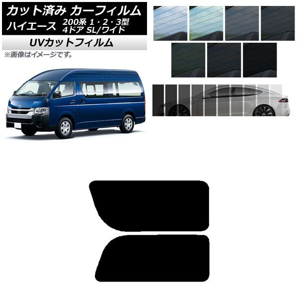 ■カーフィルム ハイエース200 1/2/3型 バン 4ドア スーパーロング/ワイド リア 2列目 左右固定窓 SK UV 選べる13フィルムカラー AP-WFSK01