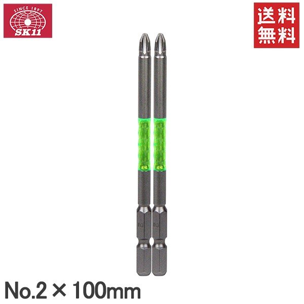 ■SK11 衝撃吸収ドライバービットセット 阿修羅ビット 段付き 2本セット +2×100mm SA-DP02-2100 日本製ドリルビット