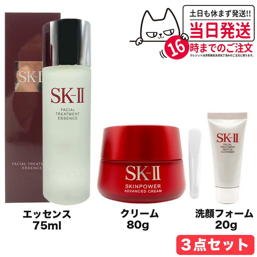 【国内正規品 3点セット】SK2 SKII SK-2 sk2 skii エスケーツー フェイシャル トリートメント エッセンス 75ml +フェイシャルトリートメントジェントルクレンザー 20g + スキンパワー アドバンスト クリーム 80g 送料無料