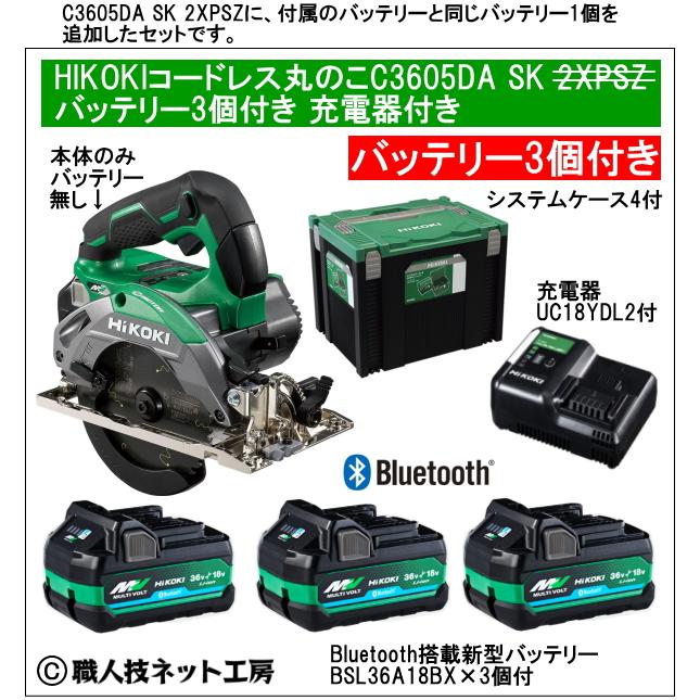 ■ハイコーキ コードレス丸のこ36V125mm C3605DA SK 2XPSZ グリーン 電池3個付 収納システムケース4タイプ付 充電器付
