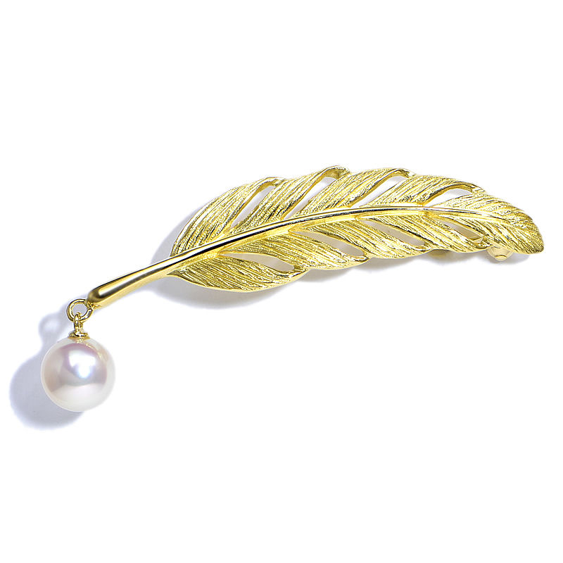 ■ミキモト 約7mm天然あこや真珠ブローチ K18YG あこやパールブローチ 羽根 フェザーモチーフ イエローゴールド 地金4.4g 中古 送料無料