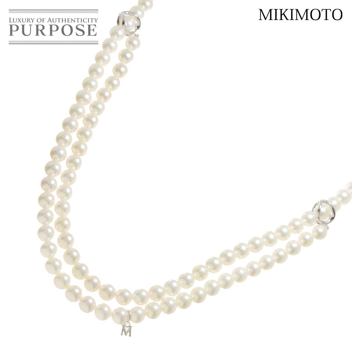 ■ミキモト MIKIMOTO アコヤ真珠 7.3-7.0mm インフィニティ ロング ネックレス 84cm K18 WG 750 レディース 90301869 【中古】BJ
