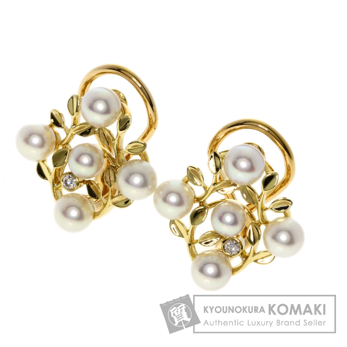 ■ミキモト MIKIMOTO パール 真珠 ダイヤモンド イヤリング K18イエローゴールド レディース 中古