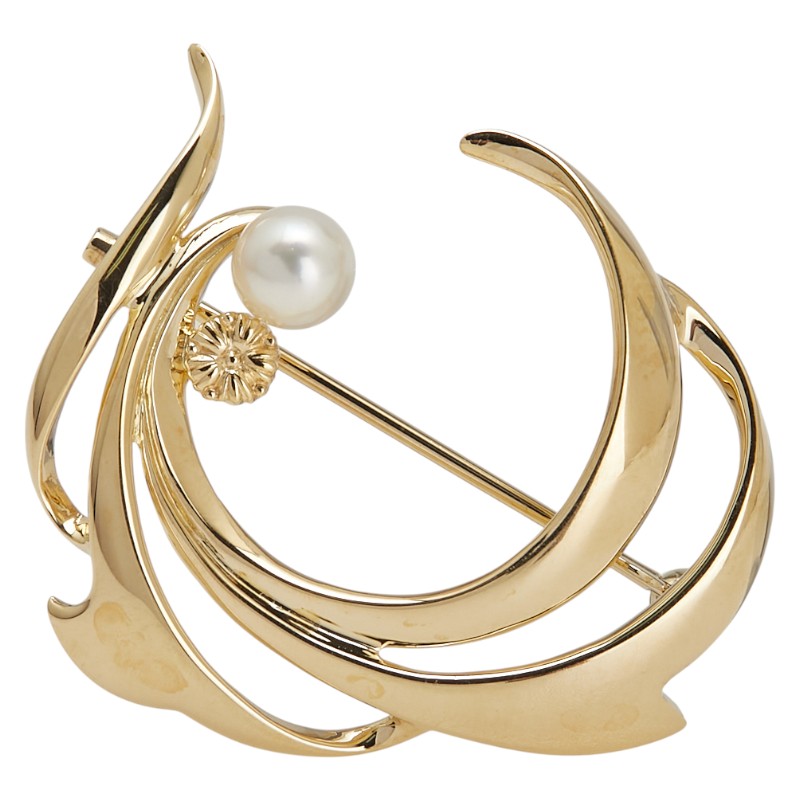 ■ミキモト K18YG イエローゴールド アコヤ真珠 アコヤパール5.3mm ブローチ レディース MIKIMOTO 中古