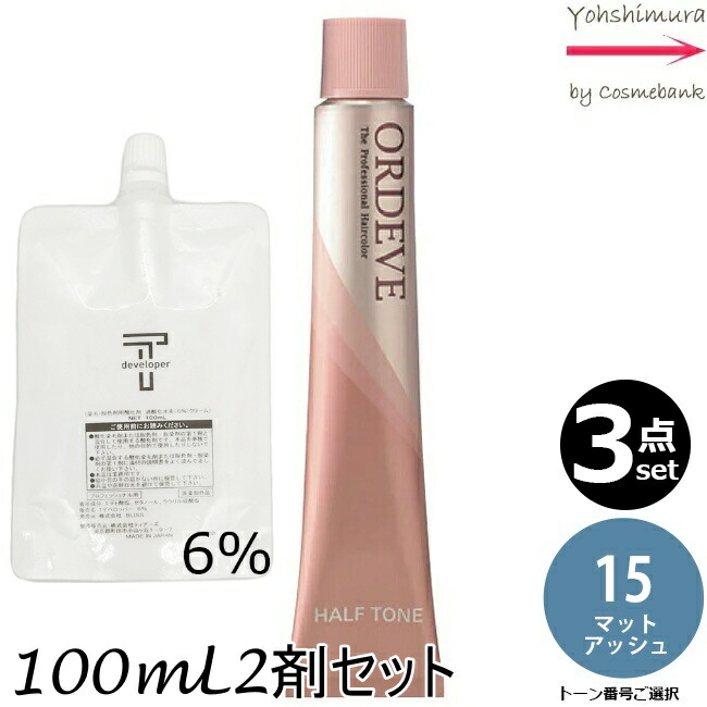 ■【3本セット・送料無料!】ミルボン オルディーブ ハーフトーン 15/H マットアッシュ 80g + クリームデベロッパー 2剤 6% 100mL セッ