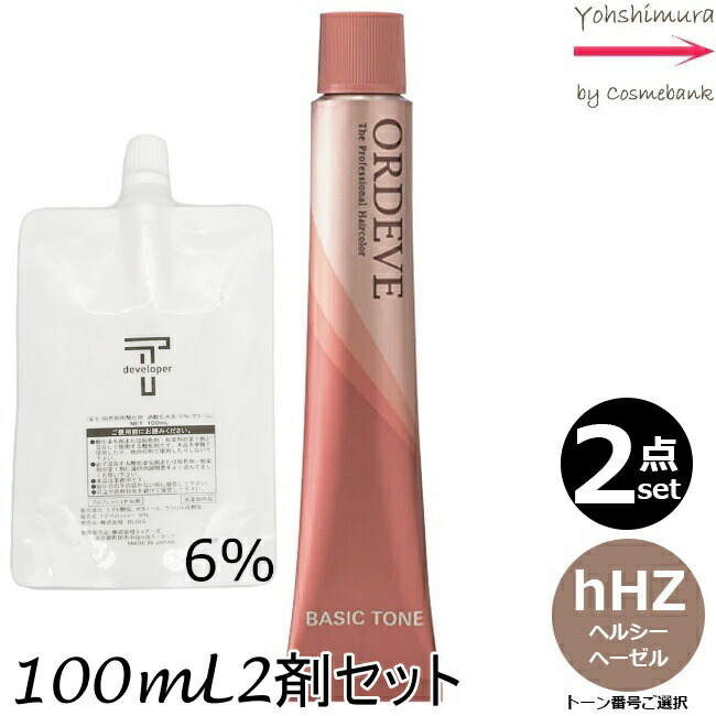 ■【2本セット・送料無料!】ミルボン オルディーブ hHZ ヘルシーヘーゼル 80g + クリームデベロッパー 2剤 6% 100mL セット |トーン番