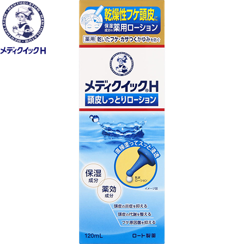 メンソレータム メディクイックHゴールド 頭皮しっとりローション 120m L *医薬部外品 ロート製薬/乾燥性フケ頭皮に着目したフケ・かゆみを防ぐ、頭皮の為の薬用ローション/4つの薬効成分と2つの保湿成分が頭皮環境を改善/薄毛・脱毛予防・育毛・養毛・毛生促進・発毛促進