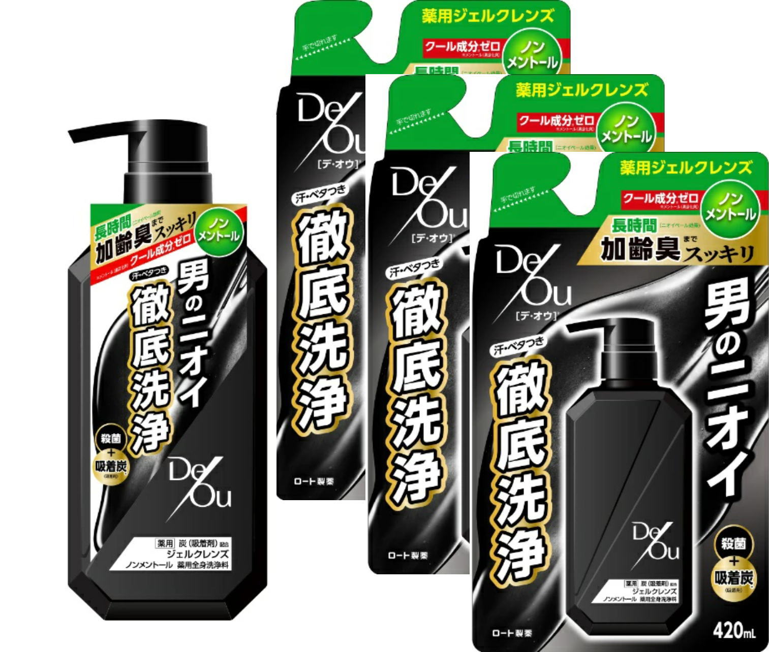■【医薬部外品】ロート製薬 デ・オウ 薬用ジェルクレンズ ノンメントール 本体 520mL 1個+詰替用 420mL 3個セット【送料無料】薬用クレン